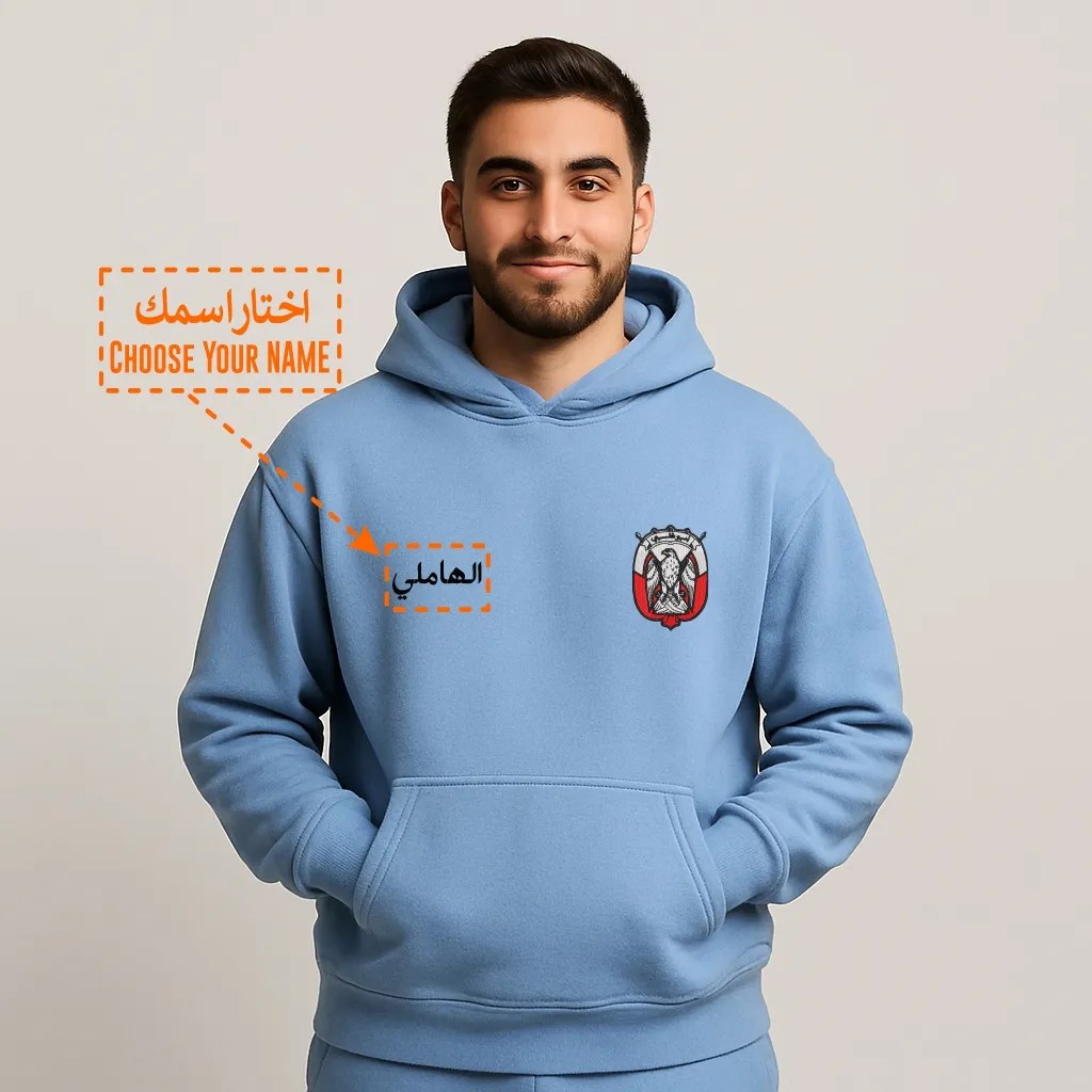 طباعة او تطريز اسم مخصص على الجهة الأمامية (الصدر) بالعربي أو الإنجليزي.