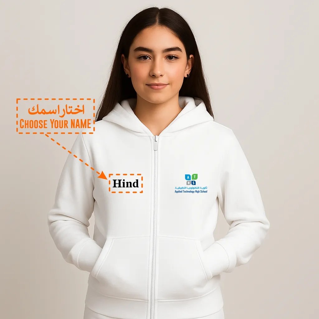 يحتوي على شعار ” مدارس التكنولوجيا التطبيقية ” طباعه أو تطريزعلى الصدر حسب الطلب، مع إمكانية تخصيص الاسم لتمييز القطعة باسم الطالب.